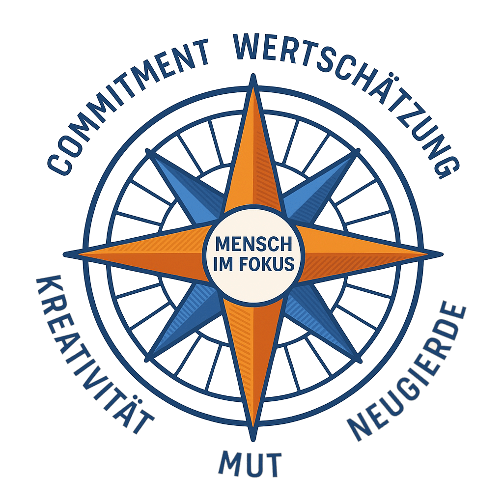 Wir streben danach, durch maßgeschneiderte Fortbildungsangebote und praxisorientierte Unterstützung den Bildungssektor nachhaltig zu transformieren. Hierbei ist unser gesamtes Engagement auf unseren Wertekompass ausgerichtet, bei dem immer der Mensch im Fokus steht: Neugier, Mut, Kreativität, Commitment, Anerkennung & Wertschätzung.